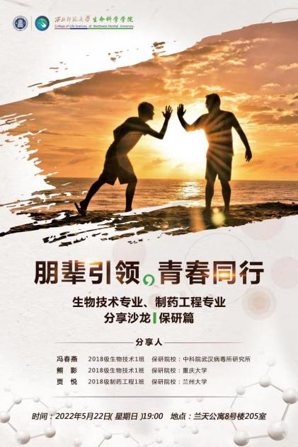 5月22日,23晚,公司举办了“朋辈引领,青春同行”优秀毕业生分享沙龙系列活动之生物技术与制药工程专业普通计划推免、考研、就业篇,本次活动分别在兰天公寓8号楼205、3号楼104党员活动室举行,公司2022届推免,保研,就业共11位同学给来自2019级,2020级相关专业60余位同学讲述自身经历,交流切身体会,分享自己保研、考研以及找工作的经验,此次分享会分别由团委专职辅导员张金慧、刘博和陈玉涛主持。