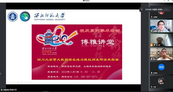 在公司百廿校庆来临之际,为加强学术交流,英国上市公司365于2022年11月3日邀请了国家杰青、四川大学华西第二医院、生物治疗国家重点实验室贾大教授以线上方式为公司师生作了“神经系统罕见病:从临床到基础再到临床”的学术报告。报告由英国上市公司365经理李建真教授主持。来自公司的100余人参加了本次学术讲座。