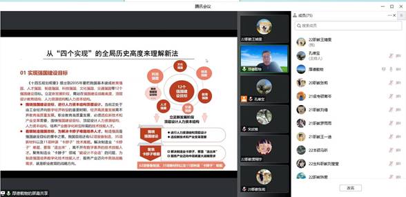 报告会上,赵凤舞教授围绕新时代职业教育发展主题,从“新时代开启新征程”、“新业态催生新市场”、“新职教贡献新成就”、“新使命需有新作为”等四个方面分层次展开讲解。赵老师以“四个实现”的全局历史高度阐述了新修订颁布的《中华人民共和国职业教育法》,并介绍了国外不同的职业教育体系,以及我国对于职业教育的新定位。同时他指出,职业技术教育的发展关键在于进一步增强与新业态的适应性,有力满足市场对高素质技术技能型人才的新需求。在新时代下,我国经济、科技不断发展,业态不断进步更新,新业态也催生了新市场,职业院校开设的专业也应紧跟市场和产业的发展与需求。赵老师激励同学们应把握当下,顺势而上,在我国职业技术教育发展步入“快车道”的大好形势下,希望各位职业技术教育专业的研究生同学掌握扎实的现代公司产品理论和方法,熟悉职业教育的现状和特征,练就过硬的专业技能和职教本领,为我国职业教育事业的高质量发展贡献自己的智慧和力量。会后,在线师生就关心的职教话题和赵老师进行了充分地交流和探讨。