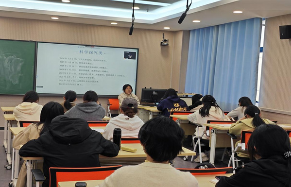 在分享环节,同学们分享了他们的备赛经历、解题思路和团队协作经验。在“东富龙-国药工程杯”制药工程设计竞赛中获得国家级二等奖的贺鑫鑫详细介绍了竞赛的全过程,他强调选题时要敏锐捕捉学科的前沿研究方向,面对复杂的实验数据和多变的实验结果,团队成员间的相互信任和紧密配合是成功的关键。而在生命科学竞赛中脱颖而出的杨蕊和冯丽则聚焦论文撰写与答辩环节进行分享,他们建议论文撰写时要逻辑清晰、数据详实,精准阐述研究的创新点与应用价值;在答辩环节,要精简实验内容,突出创新点,反复练习演讲技巧,才能更好地向评委和观众呈现研究成果。